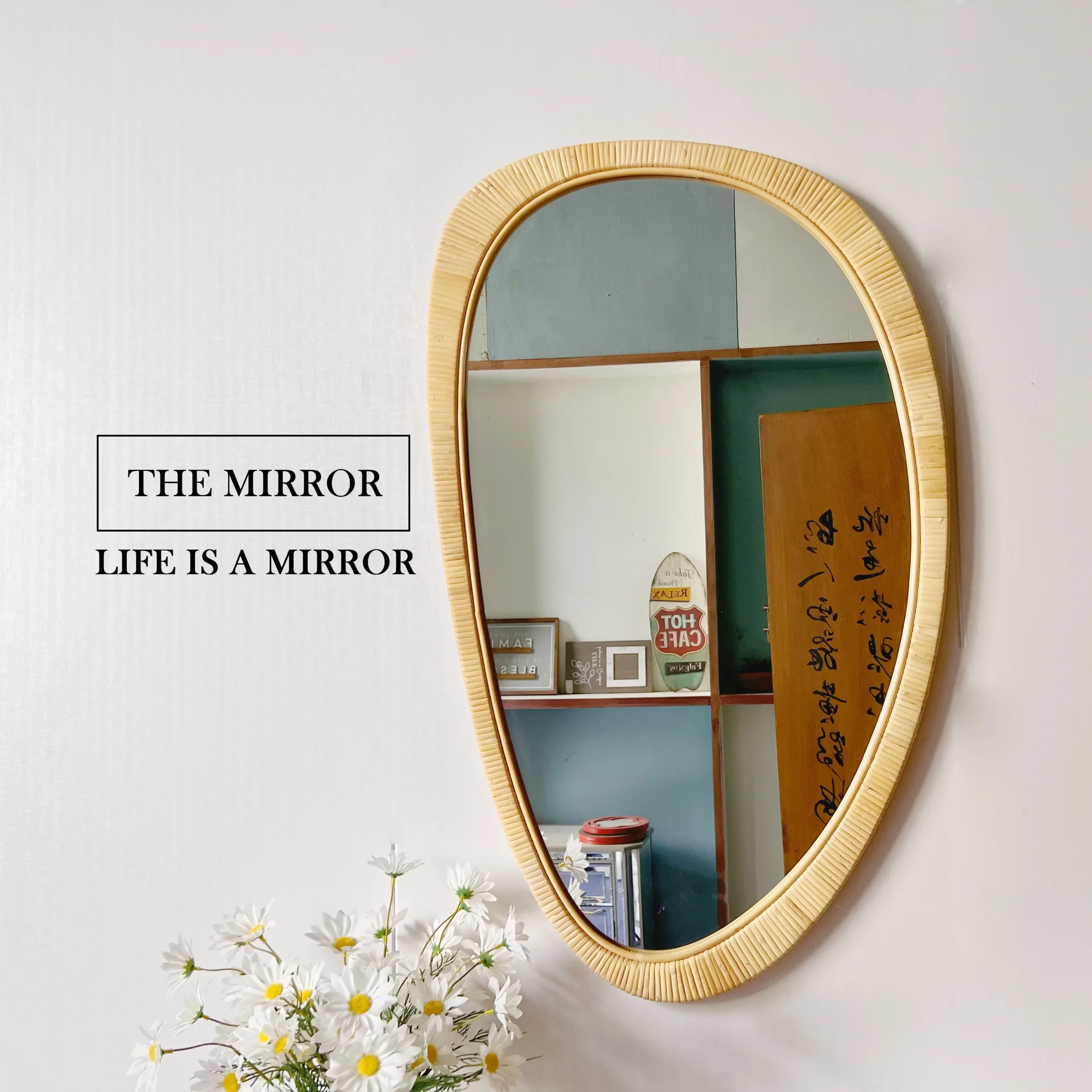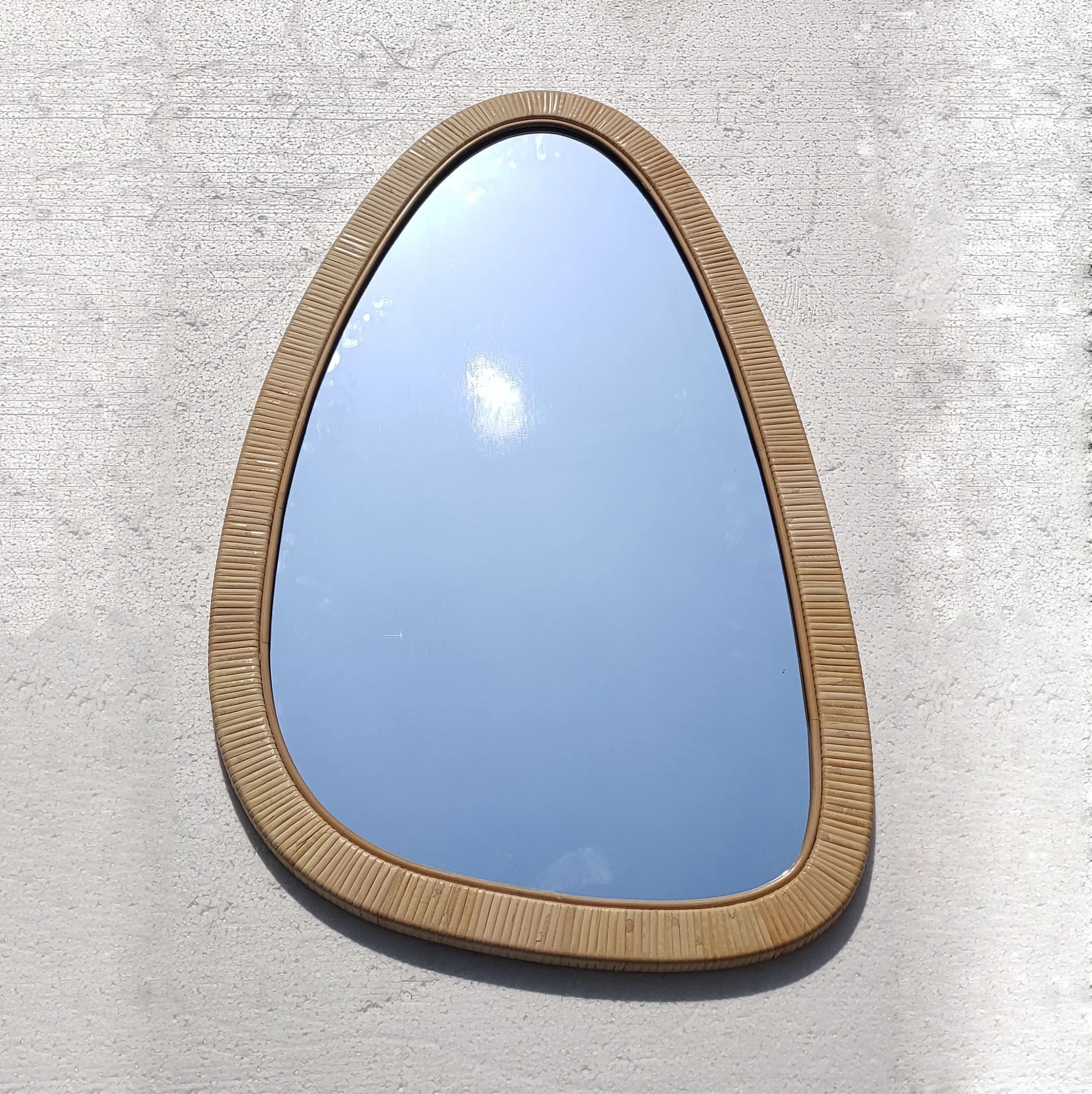 110×65 Modern Simplistic Decorative Art Home Decor Handcrafted Natural Rattan-Framed Large Wall Mirror For Bathroom Living Room