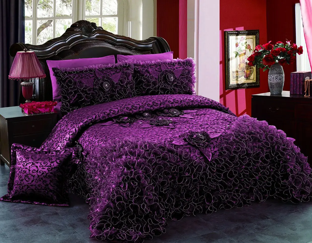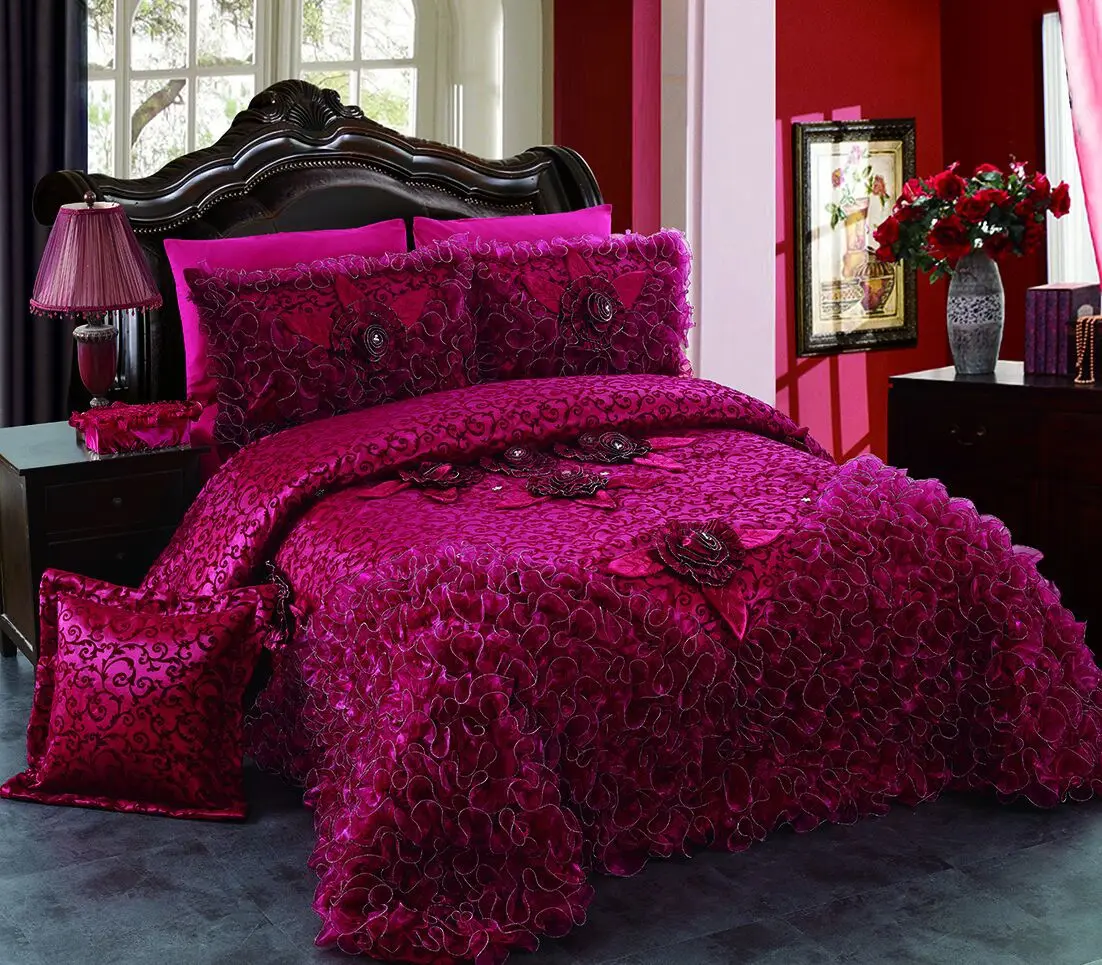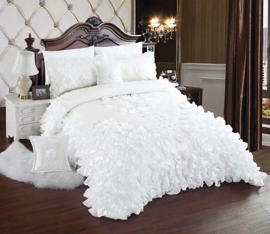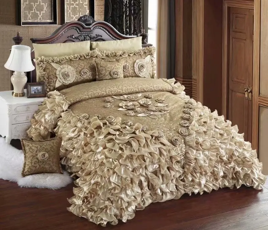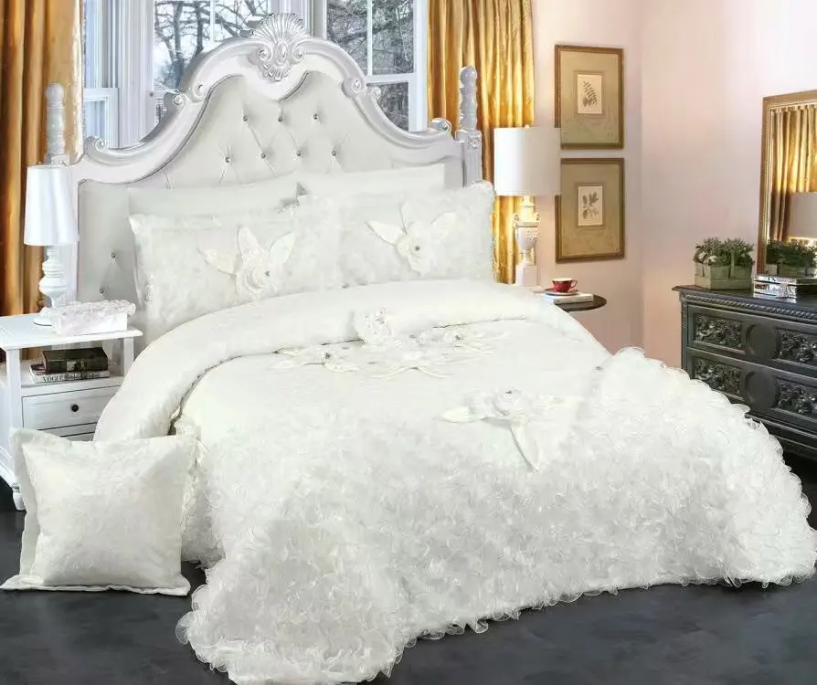 European style, quilt cover with 80 pieces of high density satin.Texture gorgeous, soft, silky smooth, three-dimensional pattern