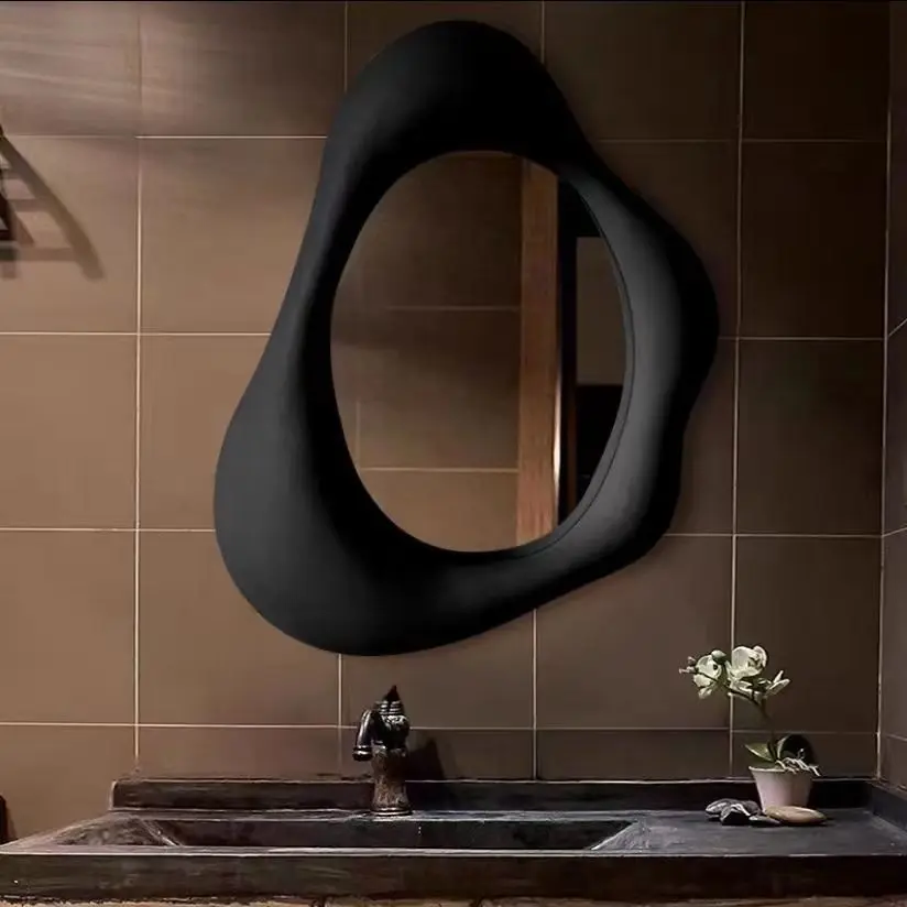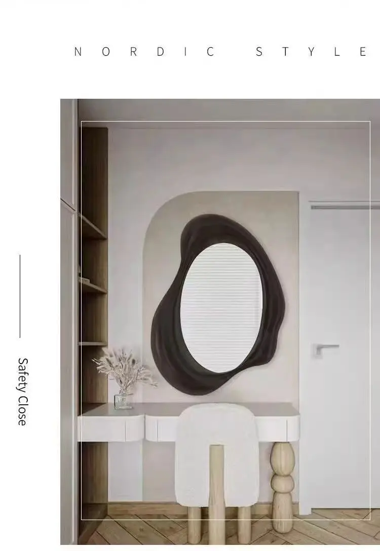 45x65cm Smooth wood framed decorative wall mirrors durable solid wooden irregular wall mirror for living room