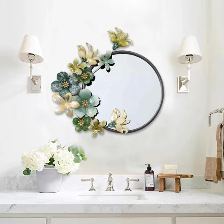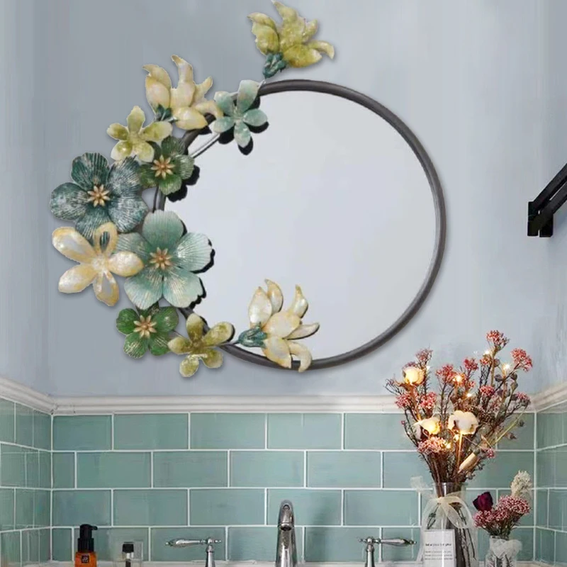 61×61 Light luxury wall mirror Iron background personality creative metal frame mirror American wall hanging accessories