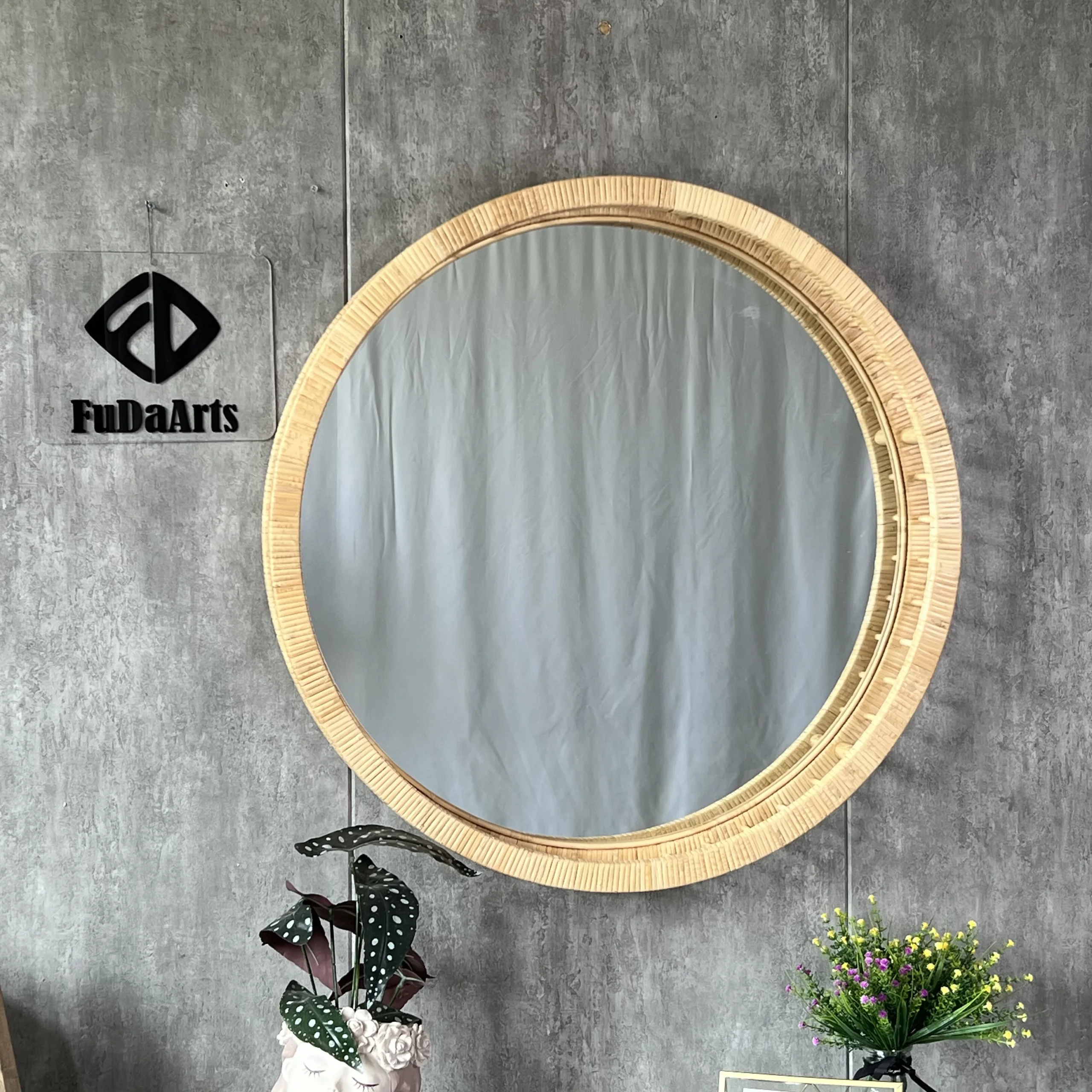 66 New Collection Rattan Mirror For Home Decoration Handicraft Round Rattan Framed Decor Living Room Wall Mounted Mirror