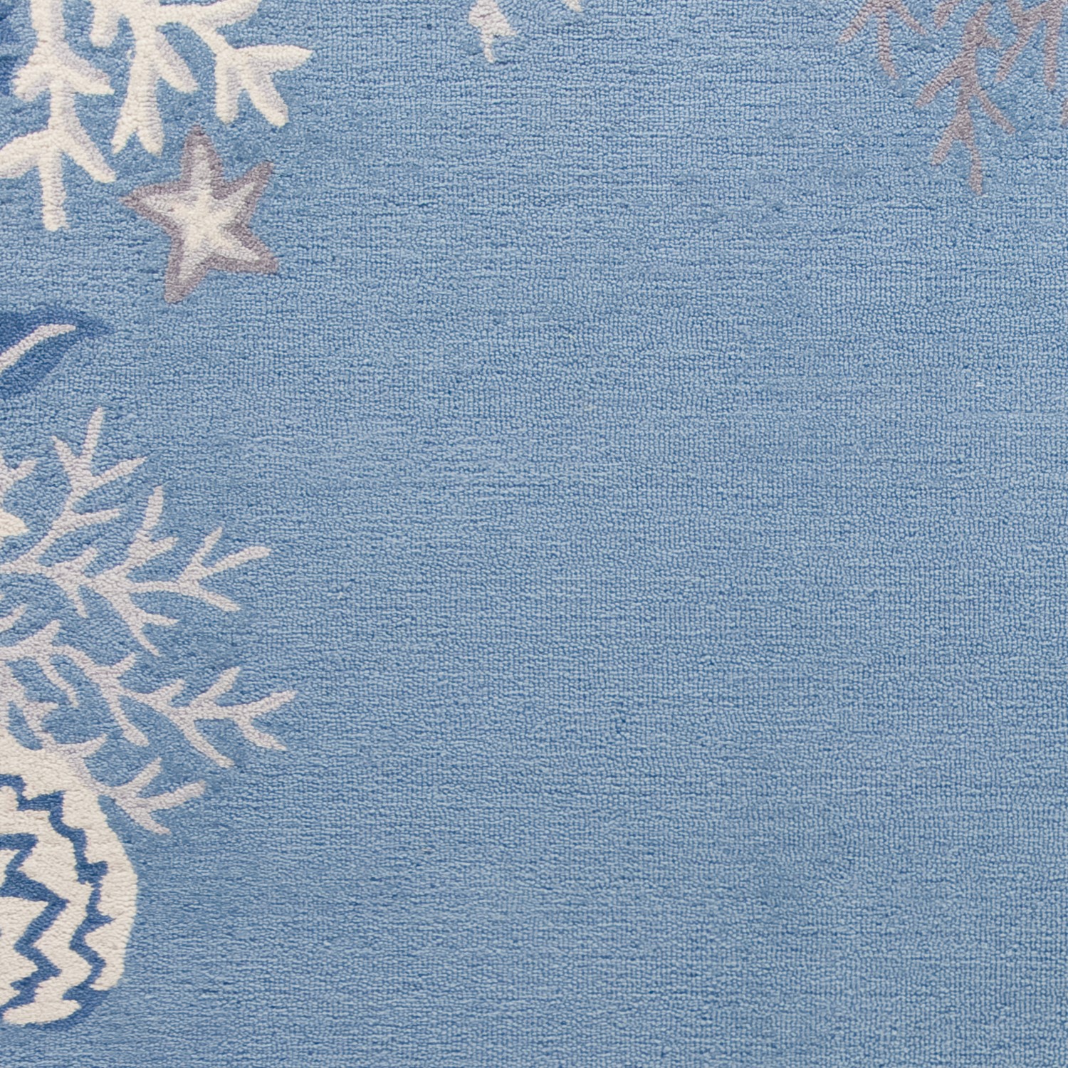 3’x5′ Sea Blue Hand Hooked Bordered Coral Reef Indoor Area Rug
